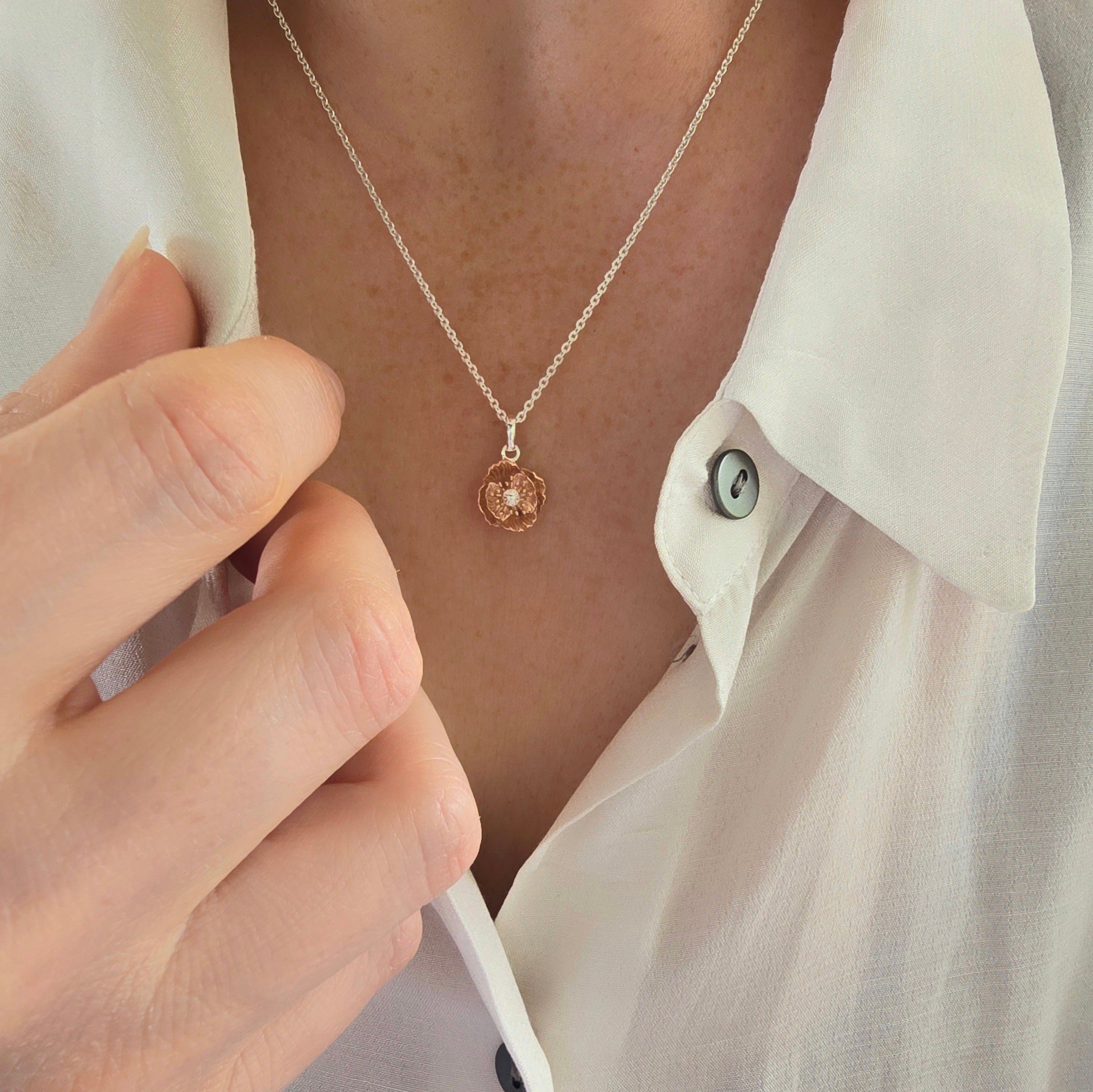 April Birth Flower Daisy Necklace | 925 Sterling Silver & Gold | Birth Month Pendant | Free Chain | Everything's Rosie Jewellery