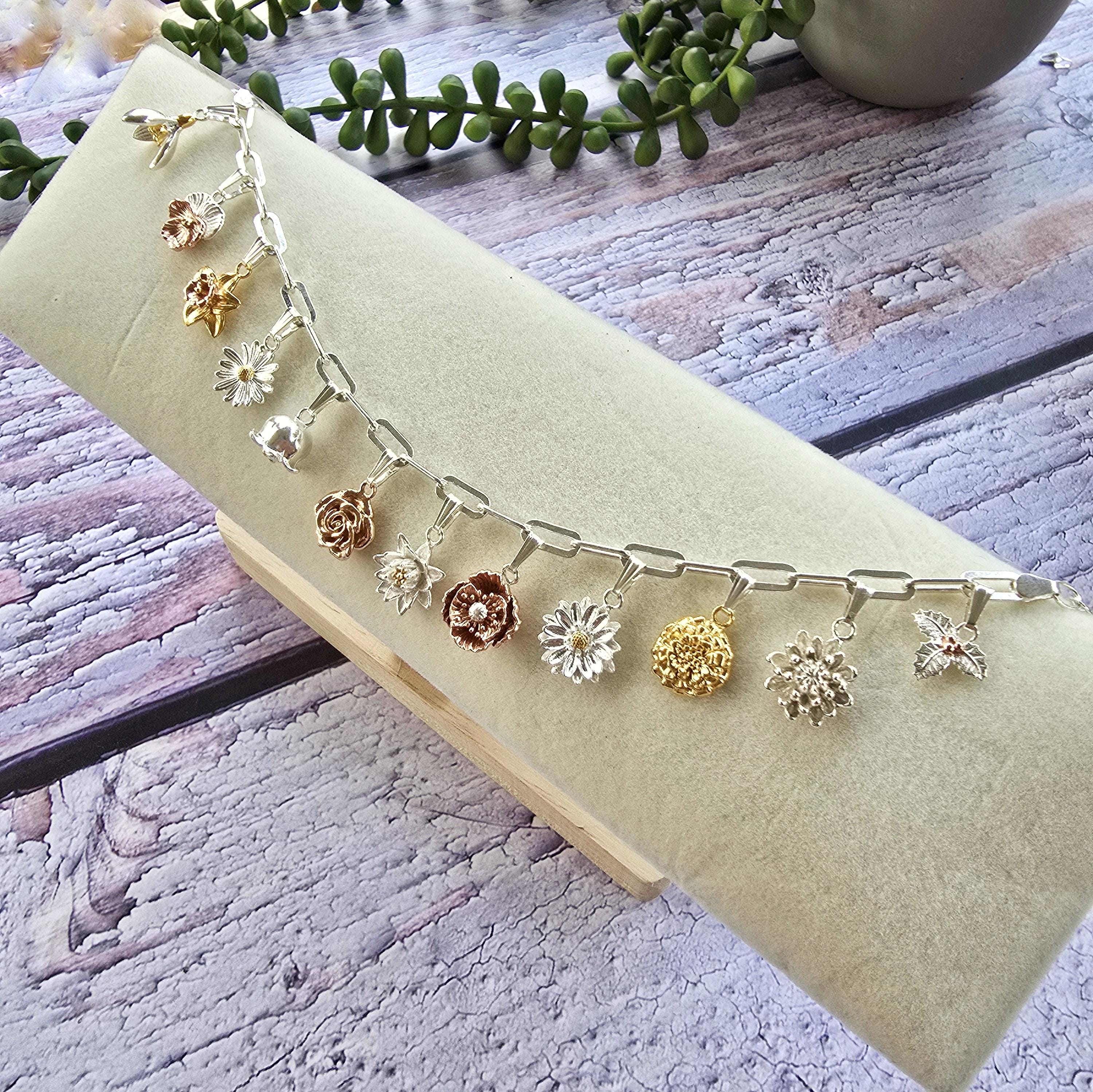 Every piece in my collection is crafted from genuine 925 sterling silver, carefully chosen to be both beautiful and meaningful. From my signature sterling silver charm bracelets to my birth flower collections, each piece is designed to become a treasured part of your jewelry story.