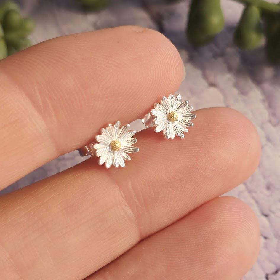 Silver Daisy Jewellery Set, April Birth Flower, Pendant Earrings & Bracelet, Sterling Silver, Minimalist Floral Design, Nature Inspired Gift